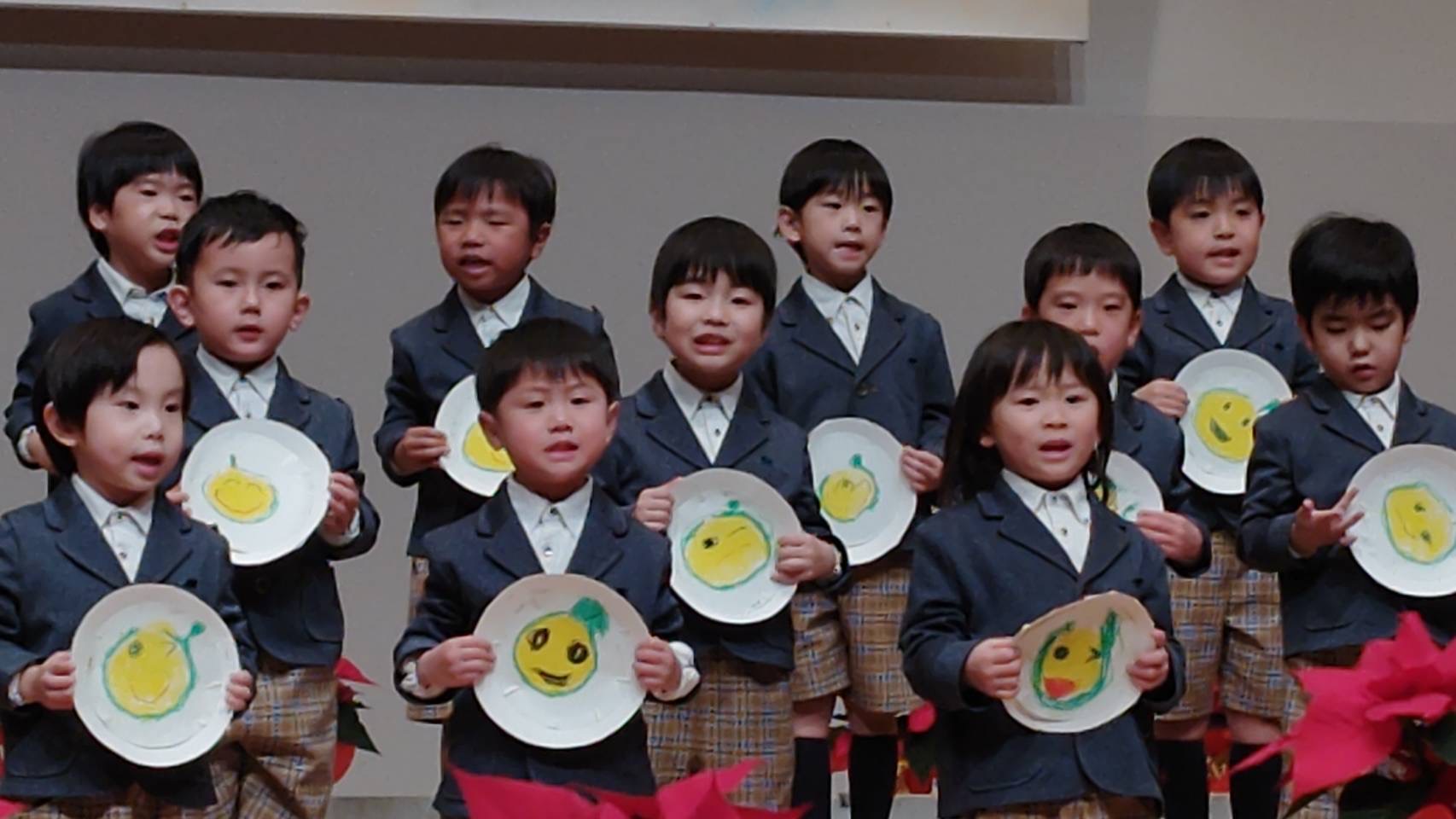 今日は2学期の締めくくりとして、「幼稚園60周年 音楽発表会」をおこないました。