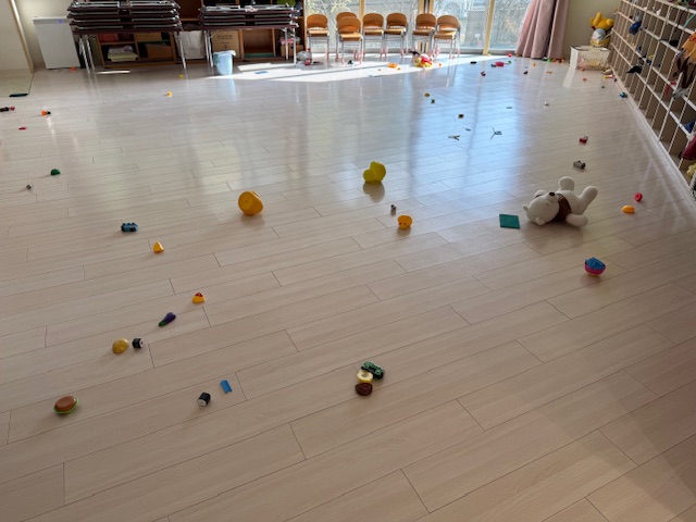 誕生会に早く行きたくて、遊んだままの状態のさくら組さん・・・