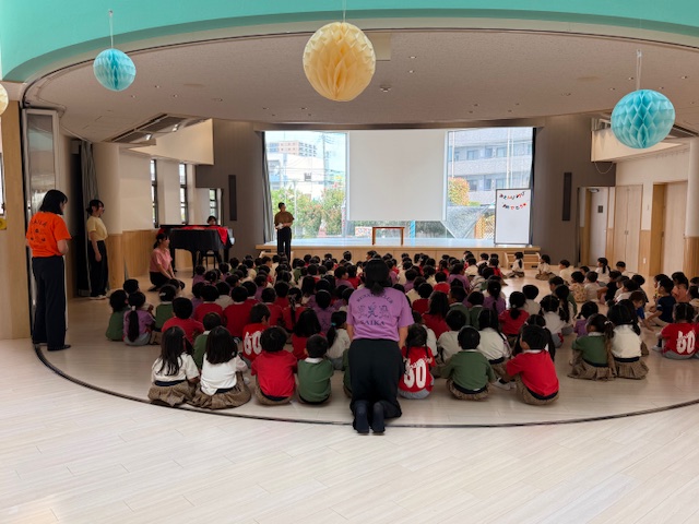 みんなでお誕生月のおともだちをお祝いした後、今月の先生によるだしものは・・・