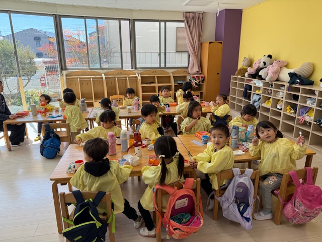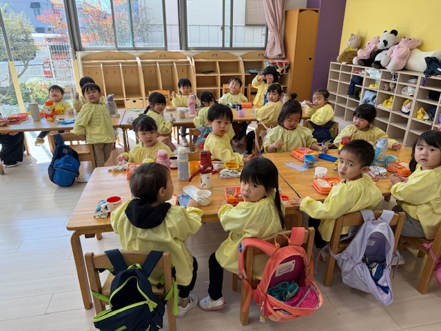 満3歳さん、みんなで楽しくお昼の時間です \(^o^)/