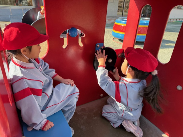 あら?汽車の中で温まっているお友だちもいますよ (^^♪