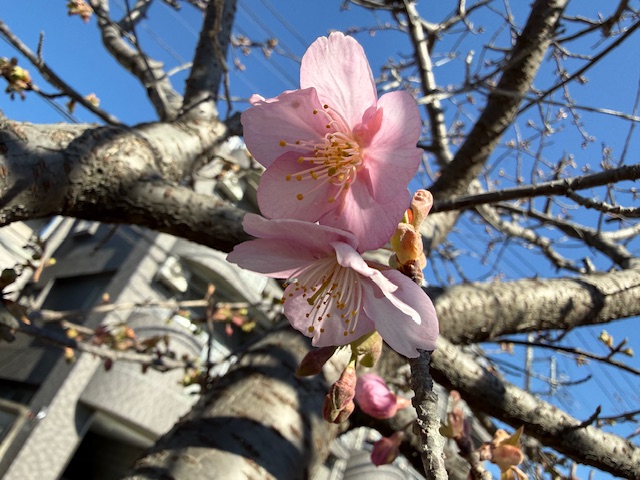 それに合わせて、なんとお庭の河津桜も開花しました!!