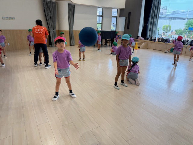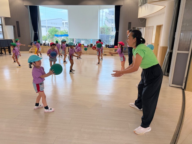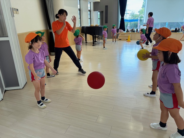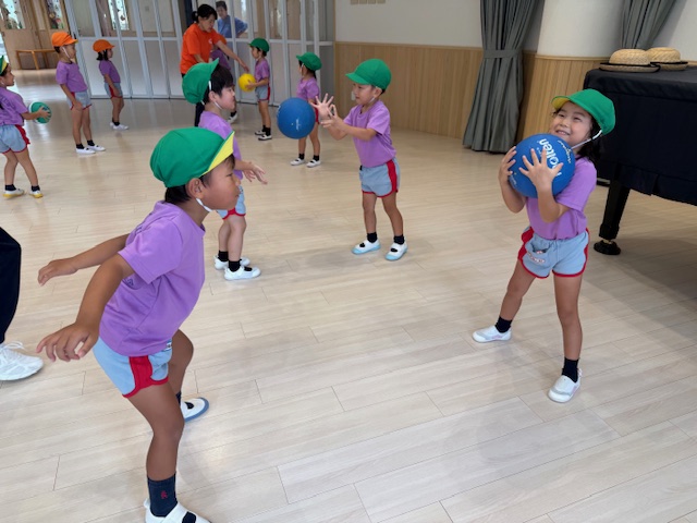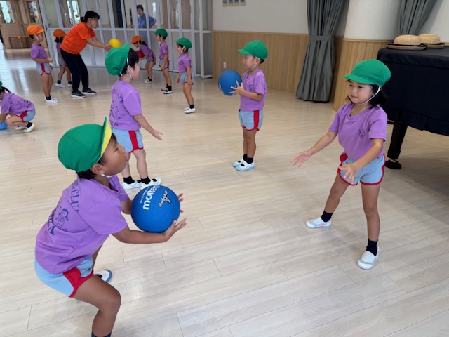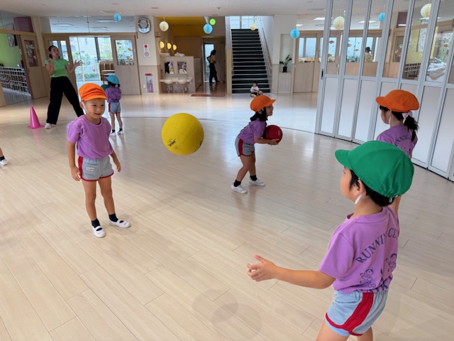 お腹でキャッチすることや、投げる時の腕の使い方などみんなで楽しく練習しています \(^o^)/