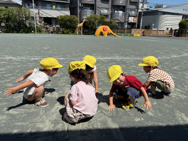 あっという間にちょうちょで遊び終えて、こちらは砂遊び (^^)/
