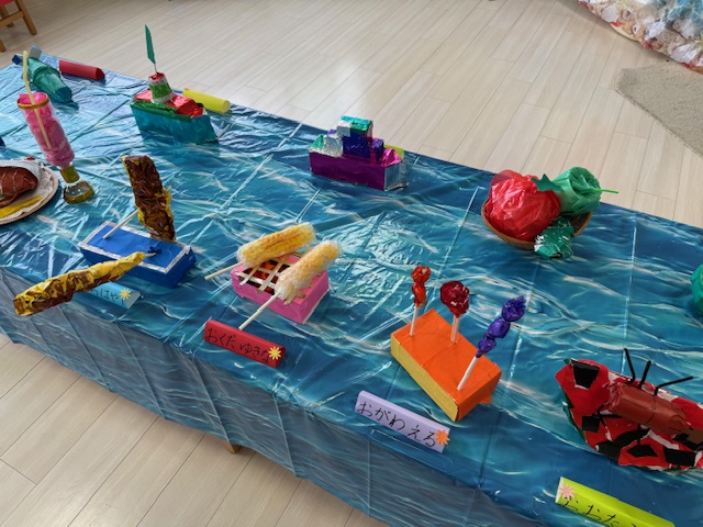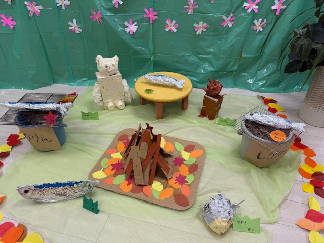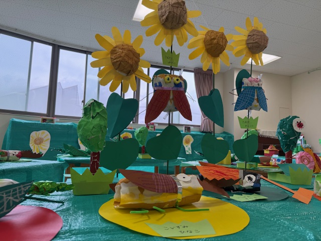 今年は幼稚園全体で「春夏秋冬」というテーマで作品をつくりました。